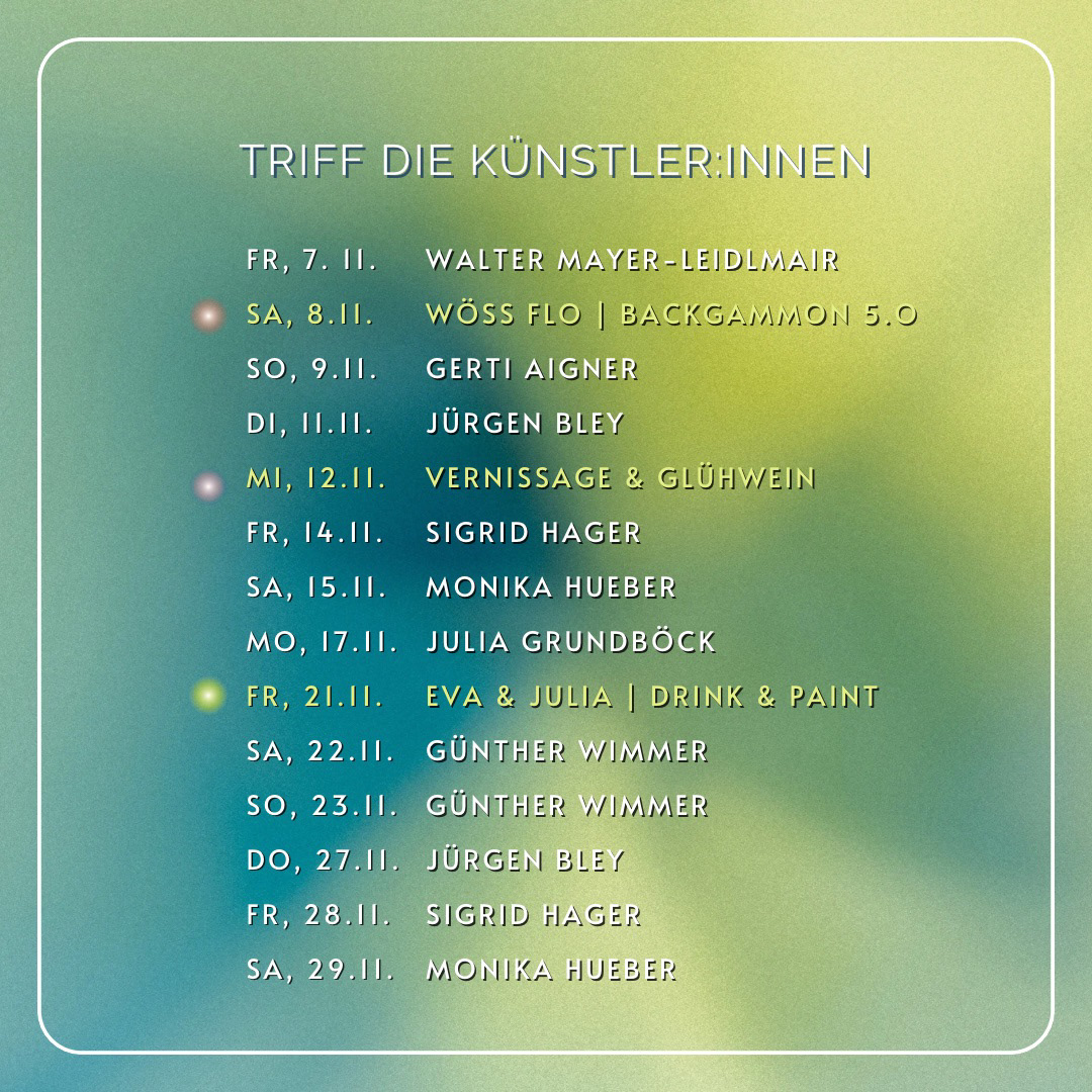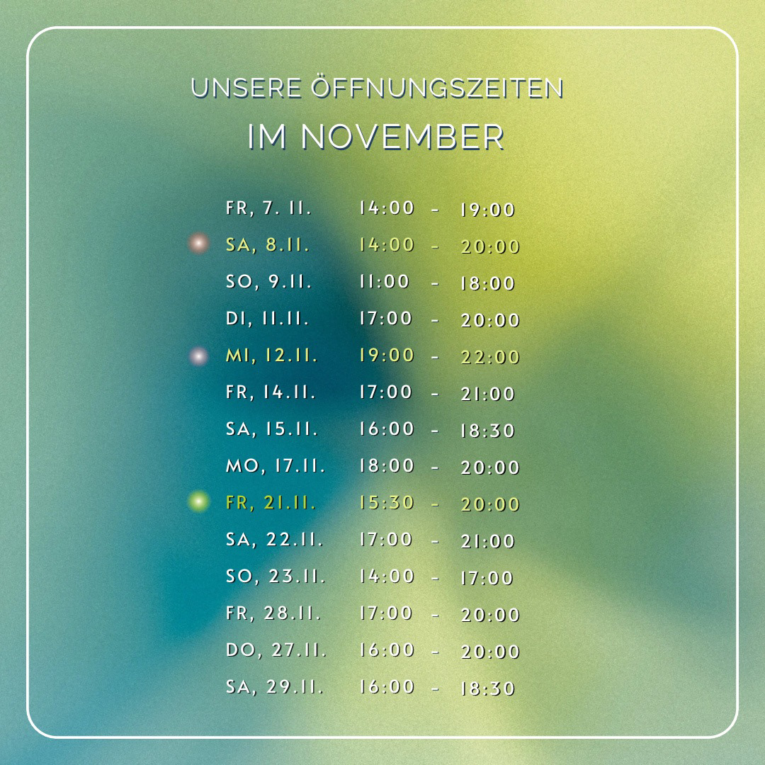 Da wir die Galerie nebenberuflich betreiben, haben wir unterschiedliche, sich ändernde Öffnungszeiten.